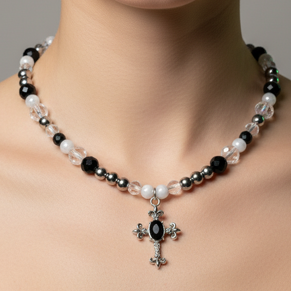 Glass Beads • Faux Pearls • Stainless Steel • Tarnish Resistant • Silver Plated Charm •